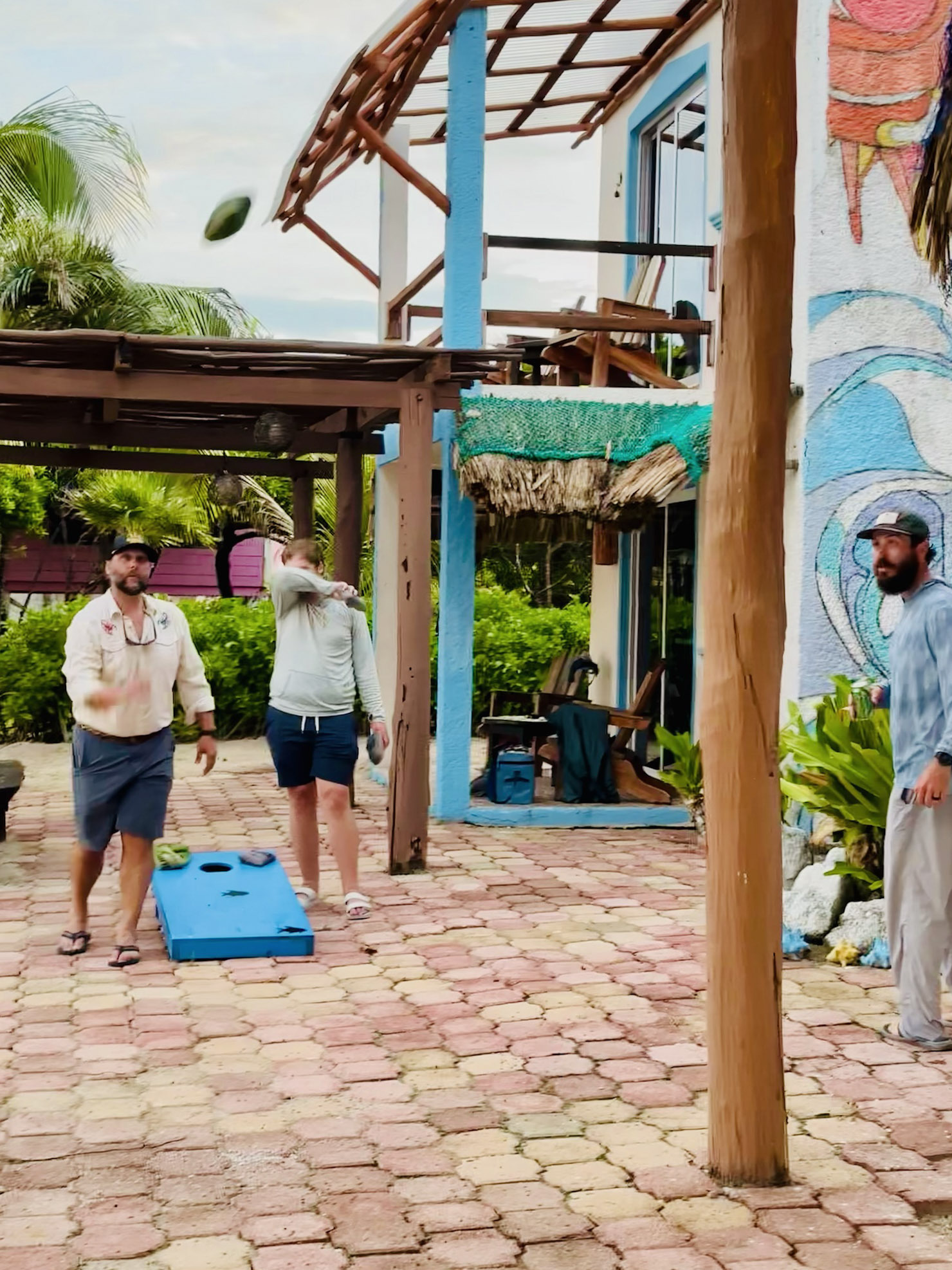 On a typical day we wake up early for coffee, and at around 7AM, anglers start to meander in for breakfast. Just before 8AM the guides start rolling up to the dock and your day on the water begins. Compared to other destinations, your commute to the flats are typically short. Sometimes we’ve ran 10-15 minutes in to Chetumal Bay and we’ve also had days where we caught fish right in front of the lodge without ever firing up the motor. It’s a dialed-in and easy program. At the end of the day, most boats are back to the dock between 4-4:30PM. if a boat isn’t back by then, there’s a good chance they are out looking to complete the slam. Cocktails, cold beers, or whatever suites you are waiting when you arrive back and everyone debriefs and settles into chill mode for the evening. Dinner is usually served around 7pm.