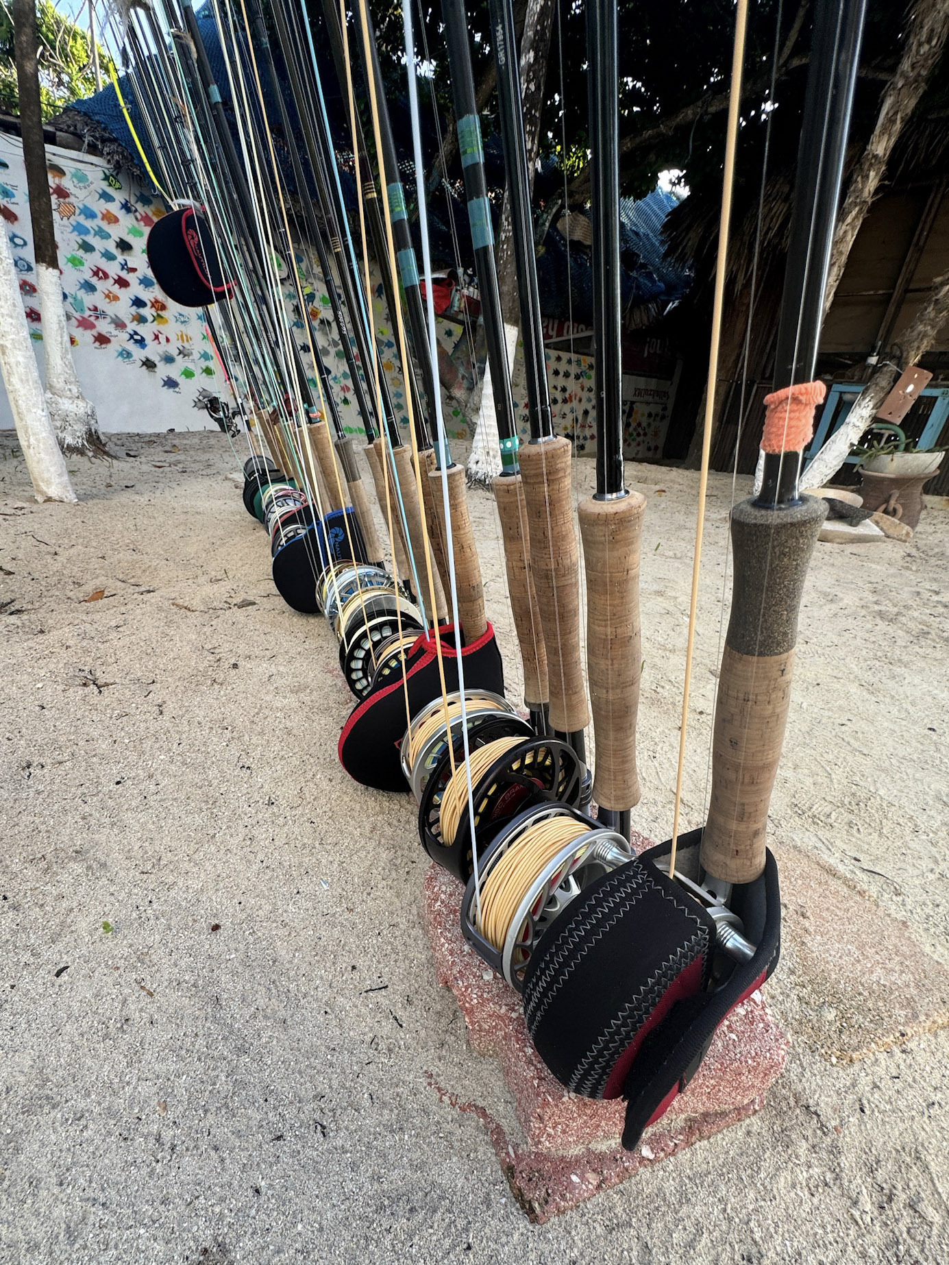 In my Dakota Carry On I usually have up to 7 rods (I try to pack backups for the groups), a handful of reels, and I’ll even throw in my Orvis Christmas Island booties too. One thing to note is that technically Mexico only allows you bring 4 fishing rods/reel down duty free, and in all my travels through Cancun I’ve never had any issues with what I bring. However, given how new the Tulum airport is, they play it by the book and inspected every bag we had, and collected tax on all our overages. My Fishpond Thunderhead backpack usually has a change of clothes in it (in case my checked bag goes missing), laptop, travel docs, and I usually travel with a bunch of RX Bars and Liquid IV’s. The Patagonia roller houses all my clothes for the week, first aid kits, backup fly lines, SA Launch Pad, and usually my larger fly boxes.