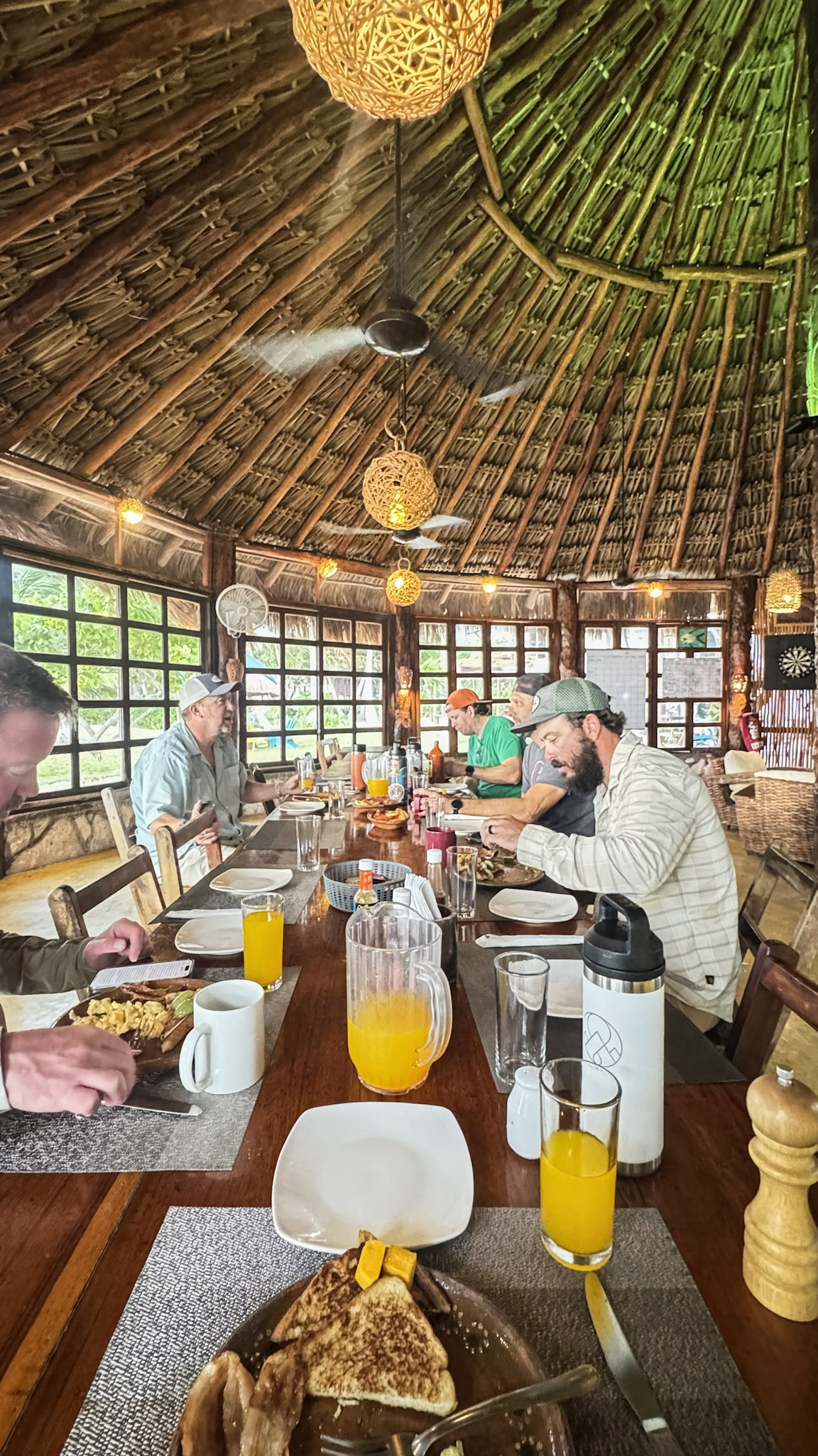 On a typical day we wake up early for coffee, and at around 7AM, anglers start to meander in for breakfast. Just before 8AM the guides start rolling up to the dock and your day on the water begins. Compared to other destinations, your commute to the flats are typically short. Sometimes we’ve ran 10-15 minutes in to Chetumal Bay and we’ve also had days where we caught fish right in front of the lodge without ever firing up the motor. It’s a dialed-in and easy program. At the end of the day, most boats are back to the dock between 4-4:30PM. if a boat isn’t back by then, there’s a good chance they are out looking to complete the slam. Cocktails, cold beers, or whatever suites you are waiting when you arrive back and everyone debriefs and settles into chill mode for the evening. Dinner is usually served around 7pm.