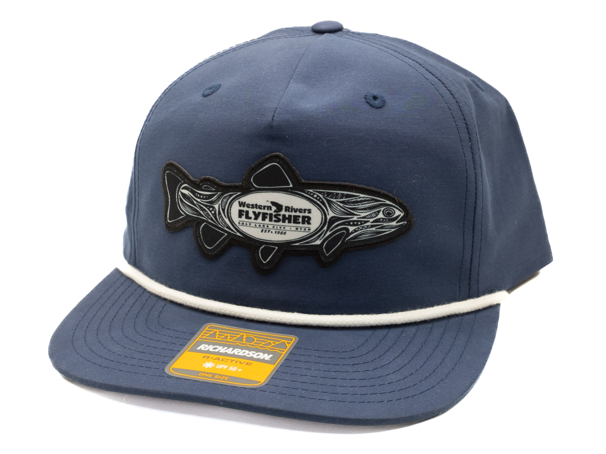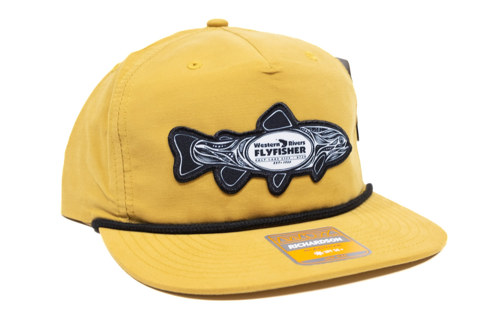 Richardson 256 Umpqua hat in Biscuit with Black Rope featuring Western Rivers Fish patch.